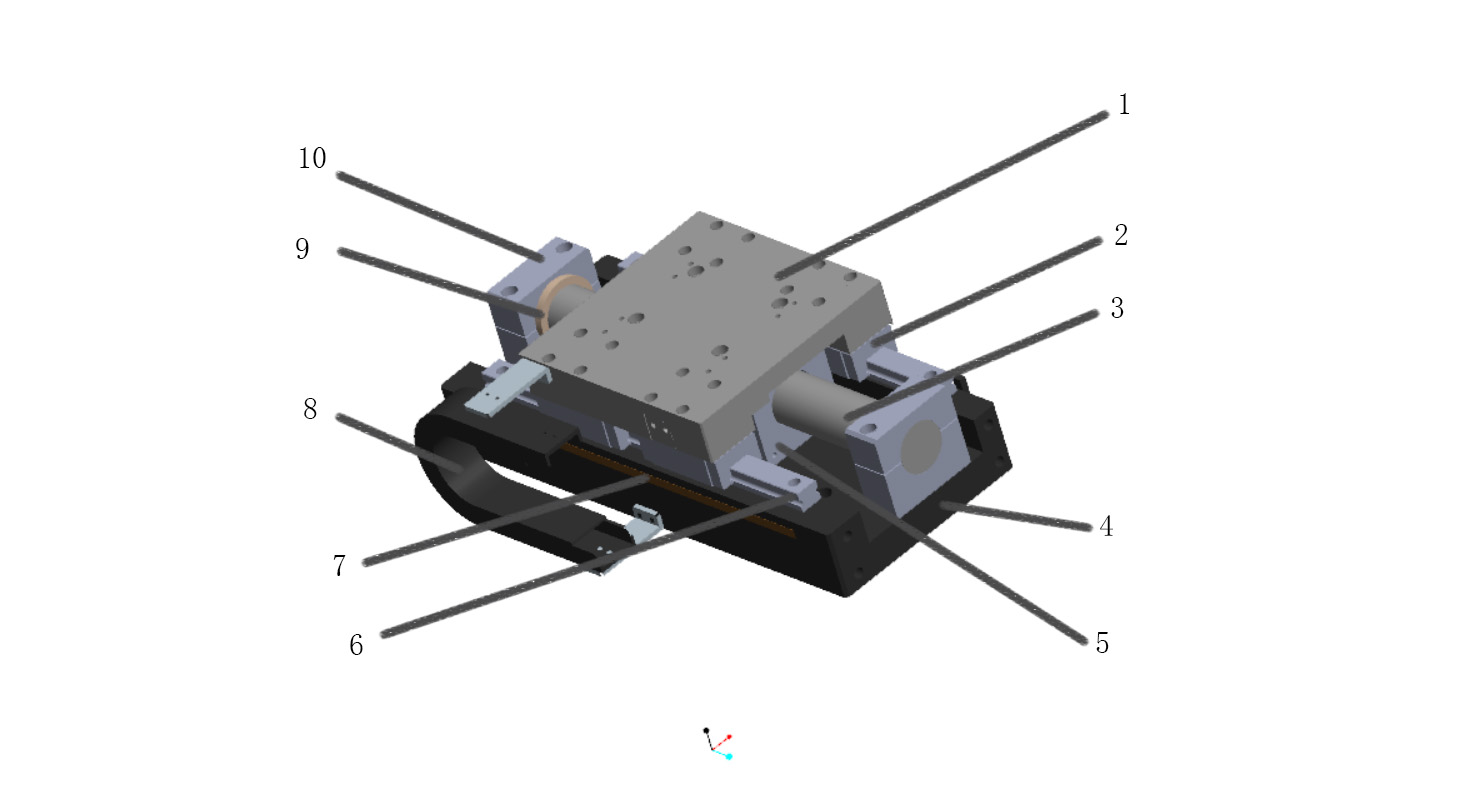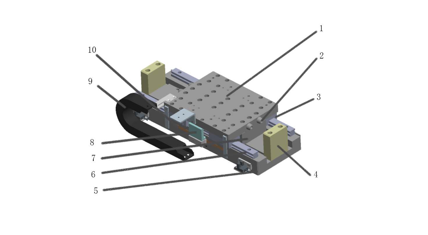 6-導(dǎo)軌 7-光柵尺 8-排線拖鏈 9-緩沖環(huán) 10-定子固定座